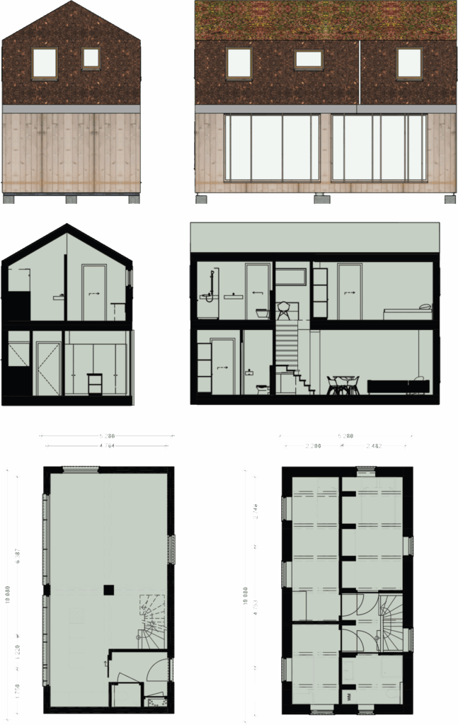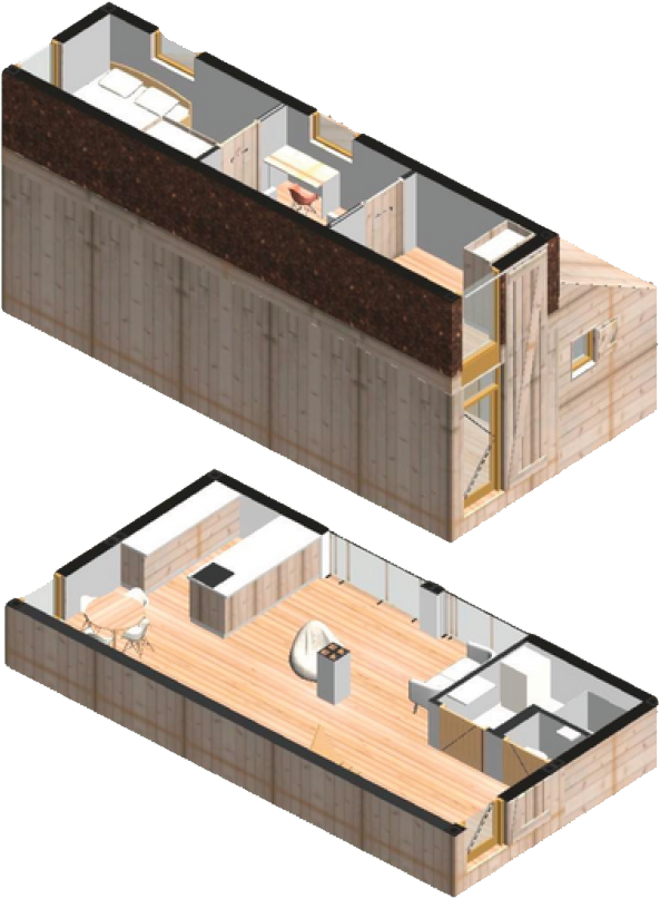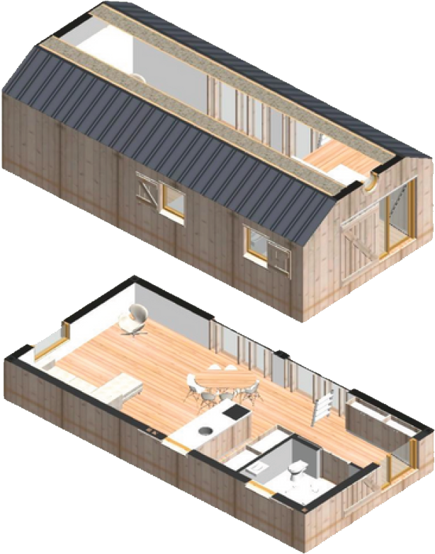 Deze slimme en duurzame woning combineert een ruimtelijk ontwerp met een compact formaat. Met een gebruikersoppervlakte van circa 50 m² biedt de woning verrassend veel leefruimte, verdeeld over twee verdiepingen. De indeling is efficiënt en oordacht, met onder meer de mogelijkheid tot twee slaapruimtes, een complete badkamer en een volwaardige keuken.